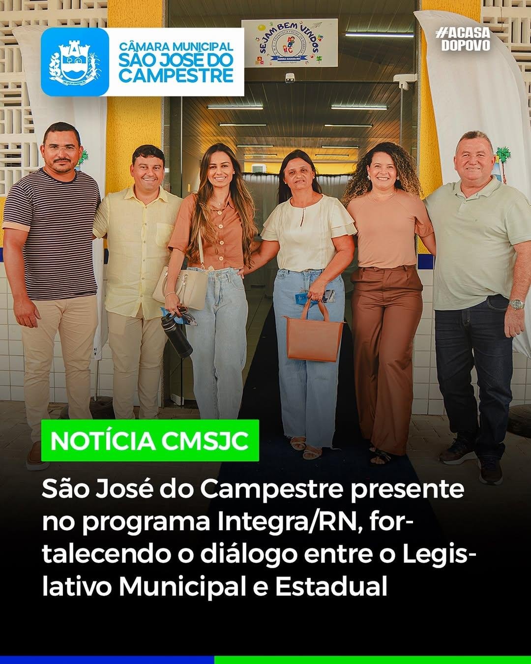 A Câmara Municipal de São José do Campestre marcou presença no Programa Integra/RN, promovido pela Assembleia Legislativa do Rio Grande do Norte, reforçando o compromisso com a integração e o fortalecimento dos poderes.
